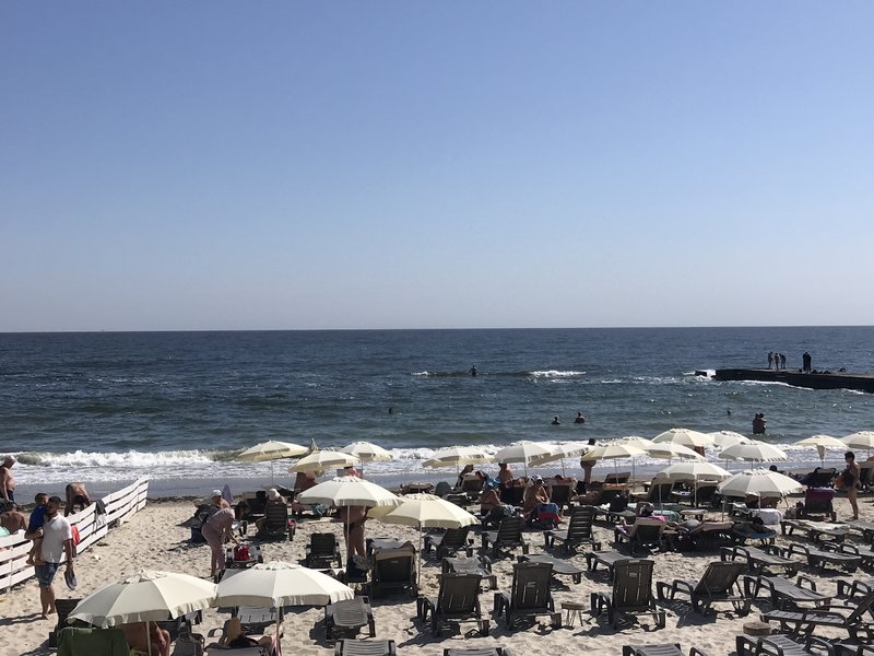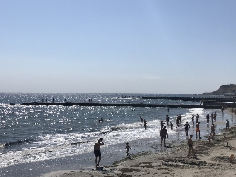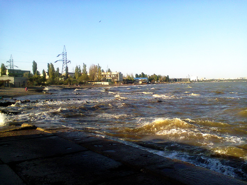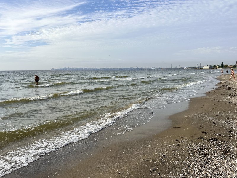 Пляж Жеваховский. Грязь и мусор, плохо пахнет. Море волнуется и вода тоже грязная.
