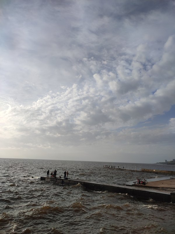 Фонтанка. Снова с утра холодина, вода грязная, +20°С, пляжи практически пустые.