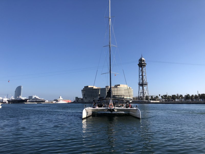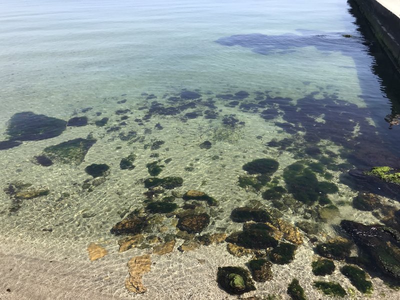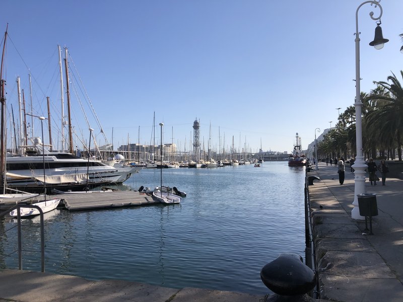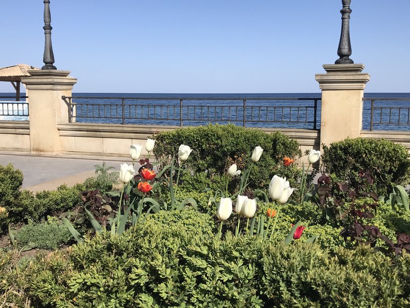 Сегодня, оказывается, холоднее, чем было вчера. Вчера было конкретное летнее тепло, 25 градусов выше ноля. А сейчас, не так, и у моря довольно прохладно. Дымка низкого тумана создаёт иллюзию открытого моря на горизонте, бо вид основного городского берега напротив справа (да и слева тоже) скрыт. Только только рассеялся и показались знакомые силуэты, в том числе и знаменитый Кемпински (который толком на полную свою мощность так и не работал).
