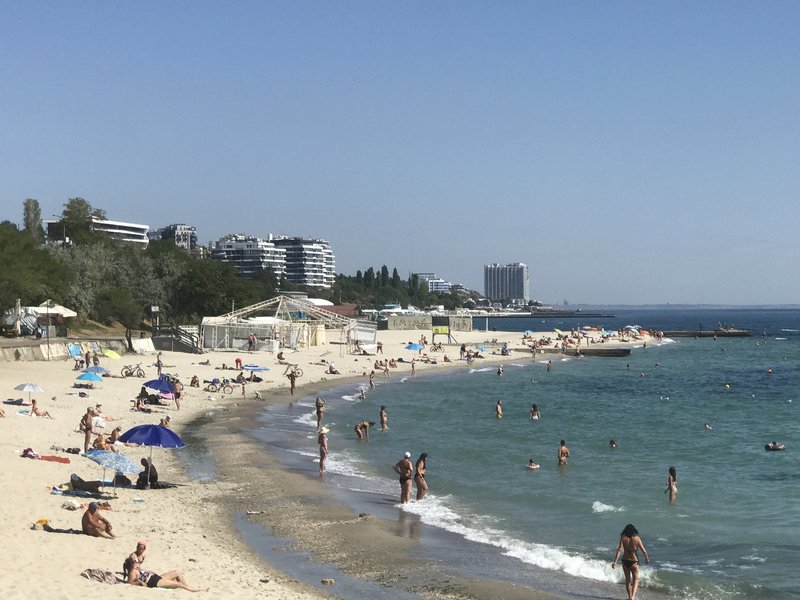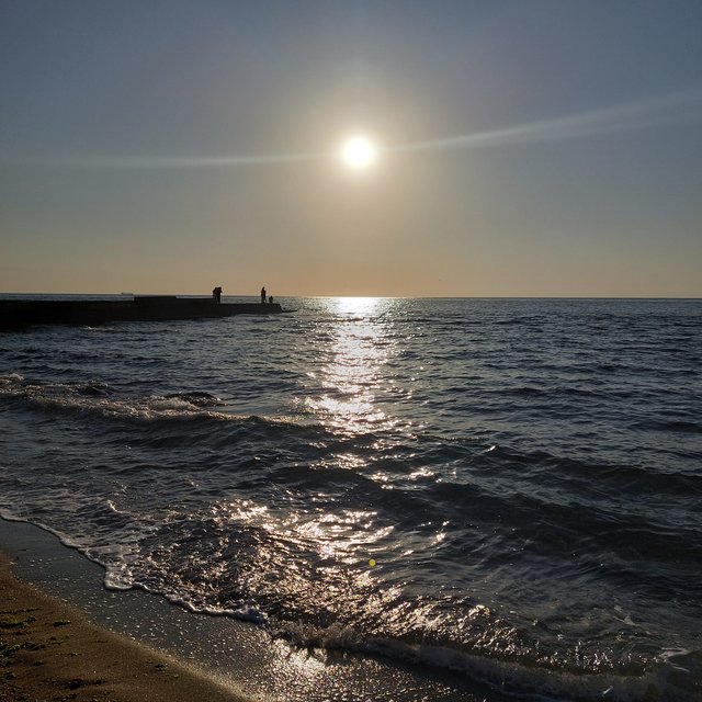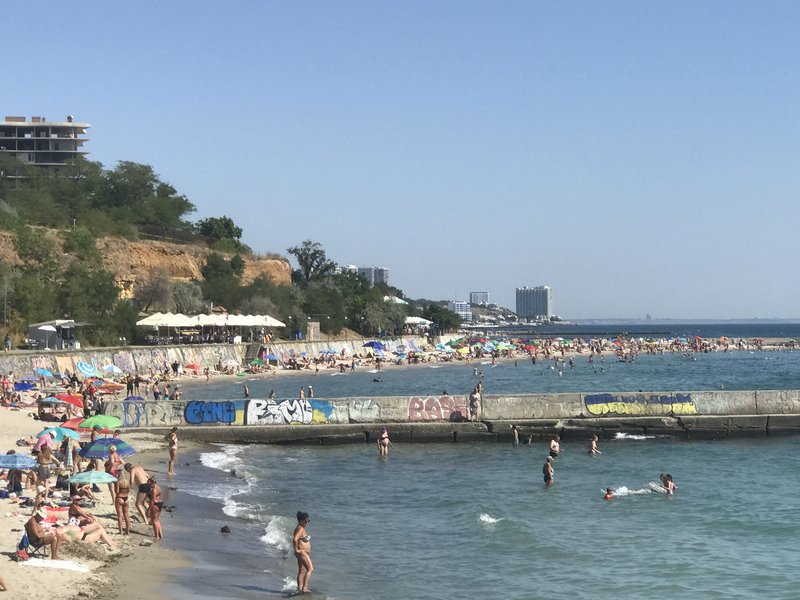 Людей не оч много.Вода шикарная по температуре.В 16.00 выходить из воды было прохладно ,ветерок.Но солнышко греет)