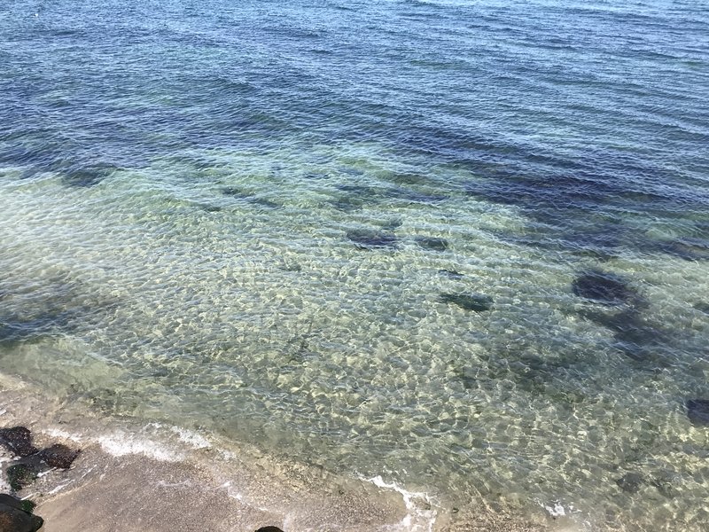 Вода чистая , прозрачная ,температура морской воды около +22С