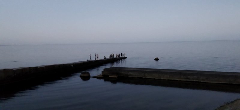 И сразу вспомнил о том , как сегодня товарищу показываю и говорю ( а это около 13.00., на этом же участке , только в два раза длиннее береговая линия , т.е. в отличии от фото ,слева и справа от "еврейского " пирса ) - вода теплая , а купающихся нет.