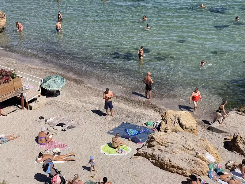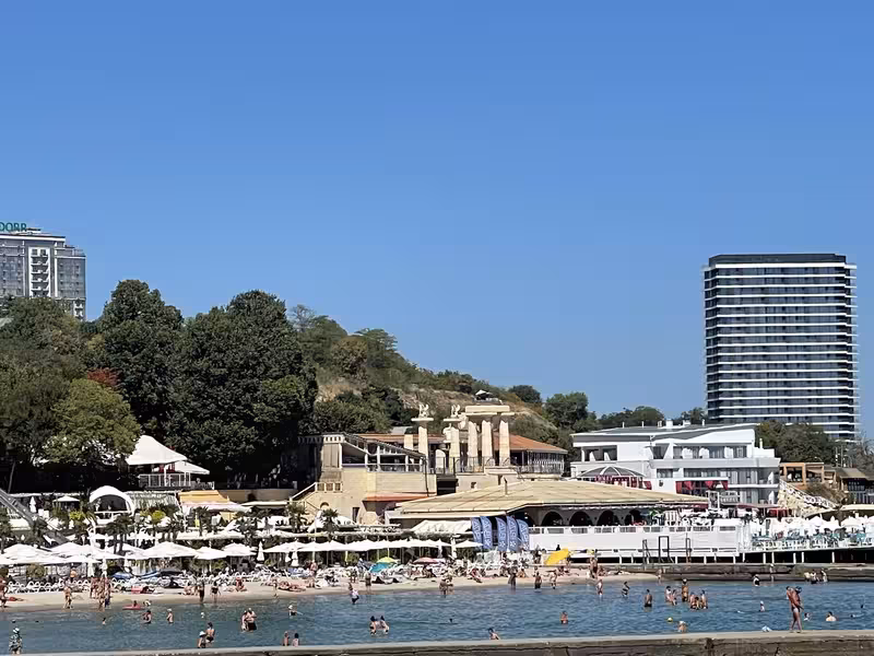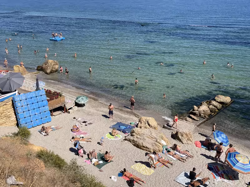 Сегодня на море с 10 до 11:30 шикарно. Людей мало, вода теплая, солнце жаркое))) море удовольствия.