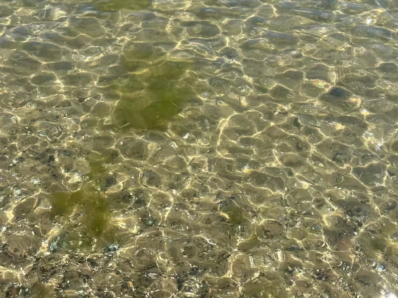 Вода чистая, прозрачная.