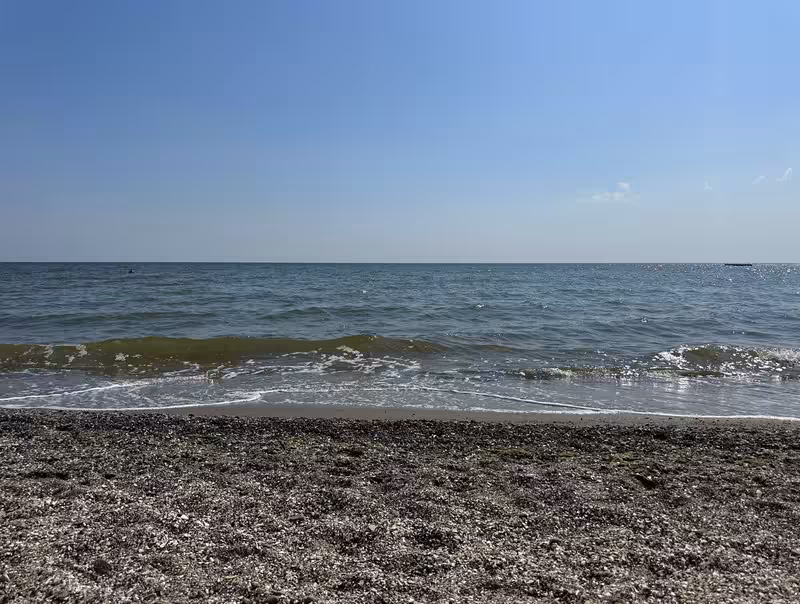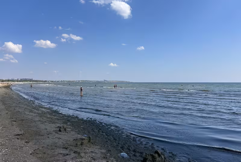 Собачий пляж. Вода 22. Водоросли. Людей много.