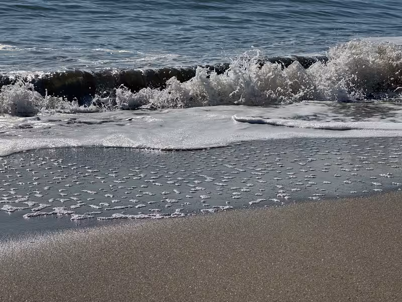 Волны поменьше чем у дома Павловых, и вообще солнышко припекает, кто хочет загорать - норм
