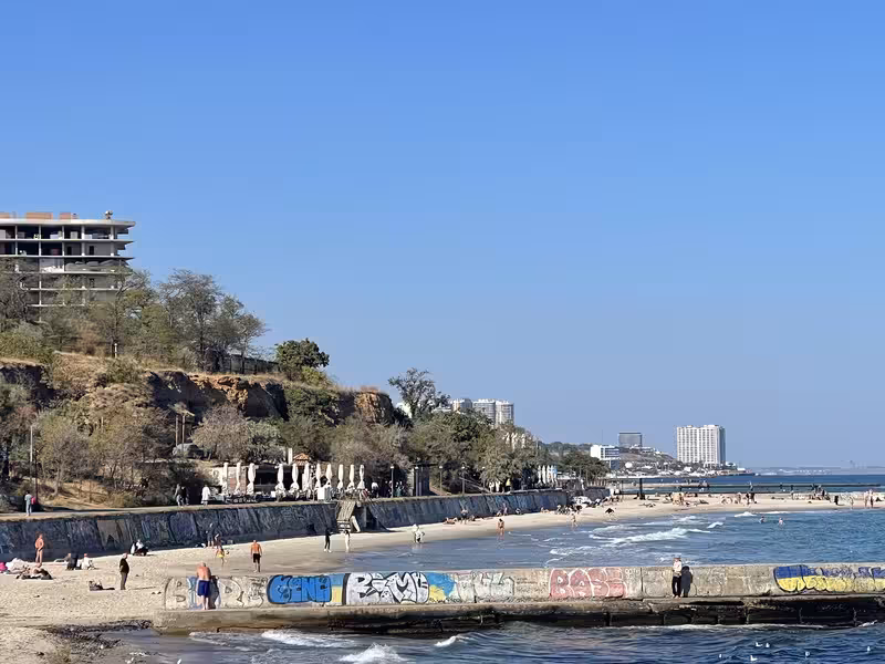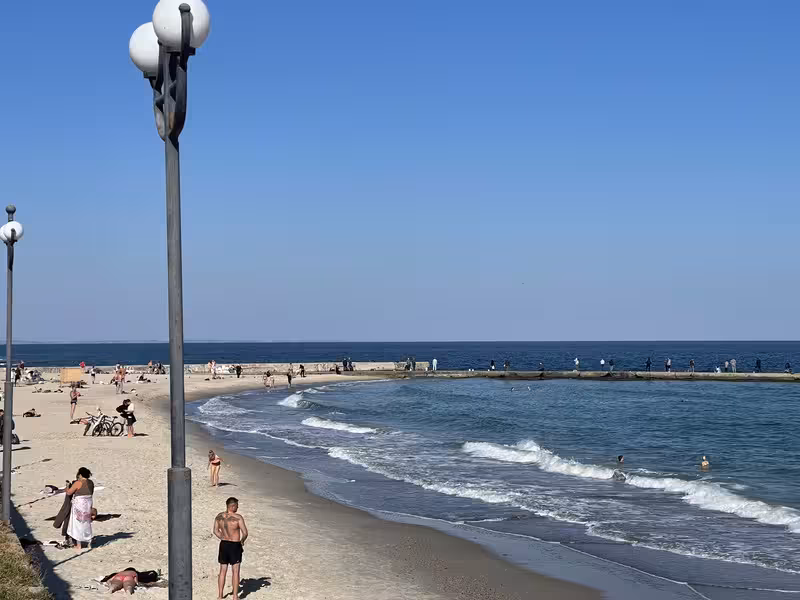 "Золотой Берег", полдень, погода сегодня комфортная, на набережной аншлаг - народ выбрался на променад, замечены купальщики, причём обоего пола.