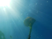 Подводный камень, точнее, большой железобетонный блок почти кубической формы, находился на глубине с головой (так было 40 и более лет назад, когда здесь подростком кувыркался в воде и знакомился с молодыми девочками, которые тоже не боялись воды и глубин), а сейчас это камень торчит только верхним своим краем на поколенной глубине. Еще год назад здесь было ещё чуть глубже пояса.