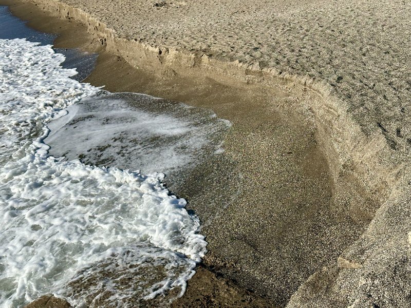 Линия берега ушла в море на несколько метров. На привычных ранее глубинах, которые были много лет назад -- до неприличия стало мелко.