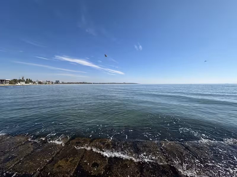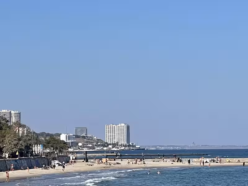 Отрада лёгкий накат волн, люди больше фоткаются чем купаются ) хотя перепада температуры с воздухом практически нет 🙂