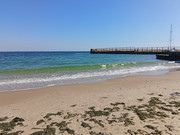 ....на море был легкий ветерок и море людей. Многие купались. Я пожалела что без купальника. Но ногами походила. Получили огромное удовольствие. И собачка тоже. На обратной дороге она спала)