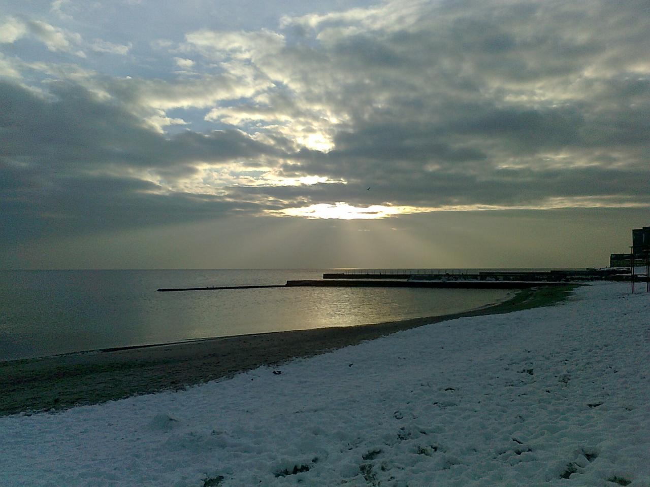 На рассвете солнце показалось на 10 мин. Возле моря из-за отсутствия влажности холода совсем не чувствуется. Вода +1С бодрила и пробежка после заплыва была непродолжительной. Постоянный состав любителей ледяной воды пополнился новичком, который даже с простудой зашел на 5 сек в воду по-шею. Посмотрим завтра утром результат эксперимента.