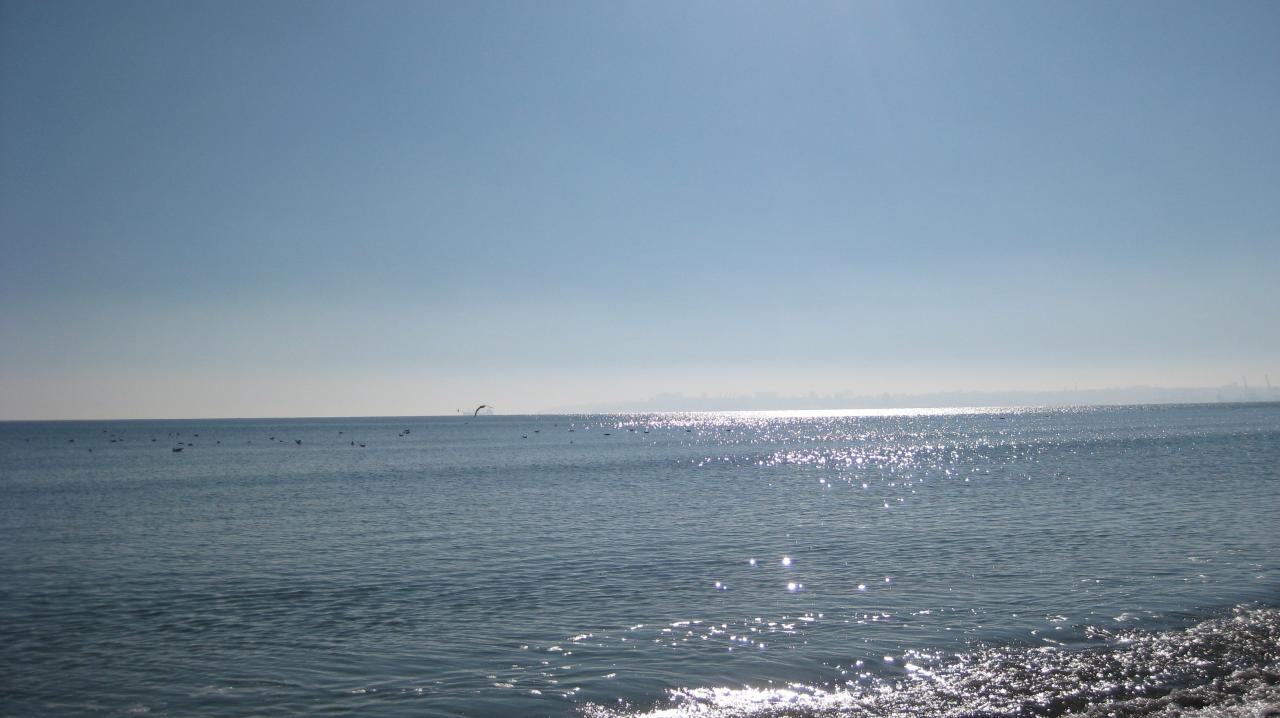 Утром впервые в этом году наблюдался лед на воде, где галечный пляж в Аркадии. Все купались и плавали.