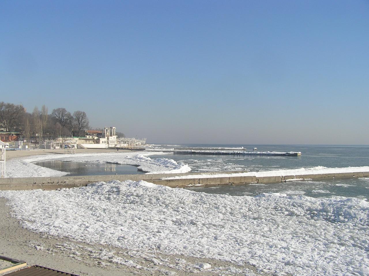 скорее всего пригнало вместе со льдомАркадия, 9 утра, лед начинает немного отступать, вода очень прозрачная и теперь видно весь мусор что скопился на дне, интересно от куда его столько там взялось