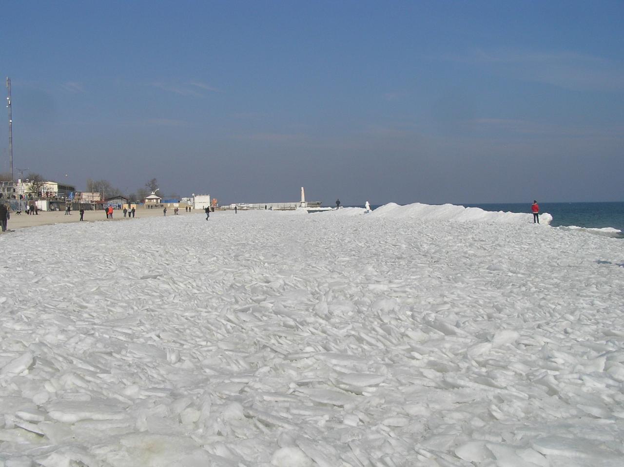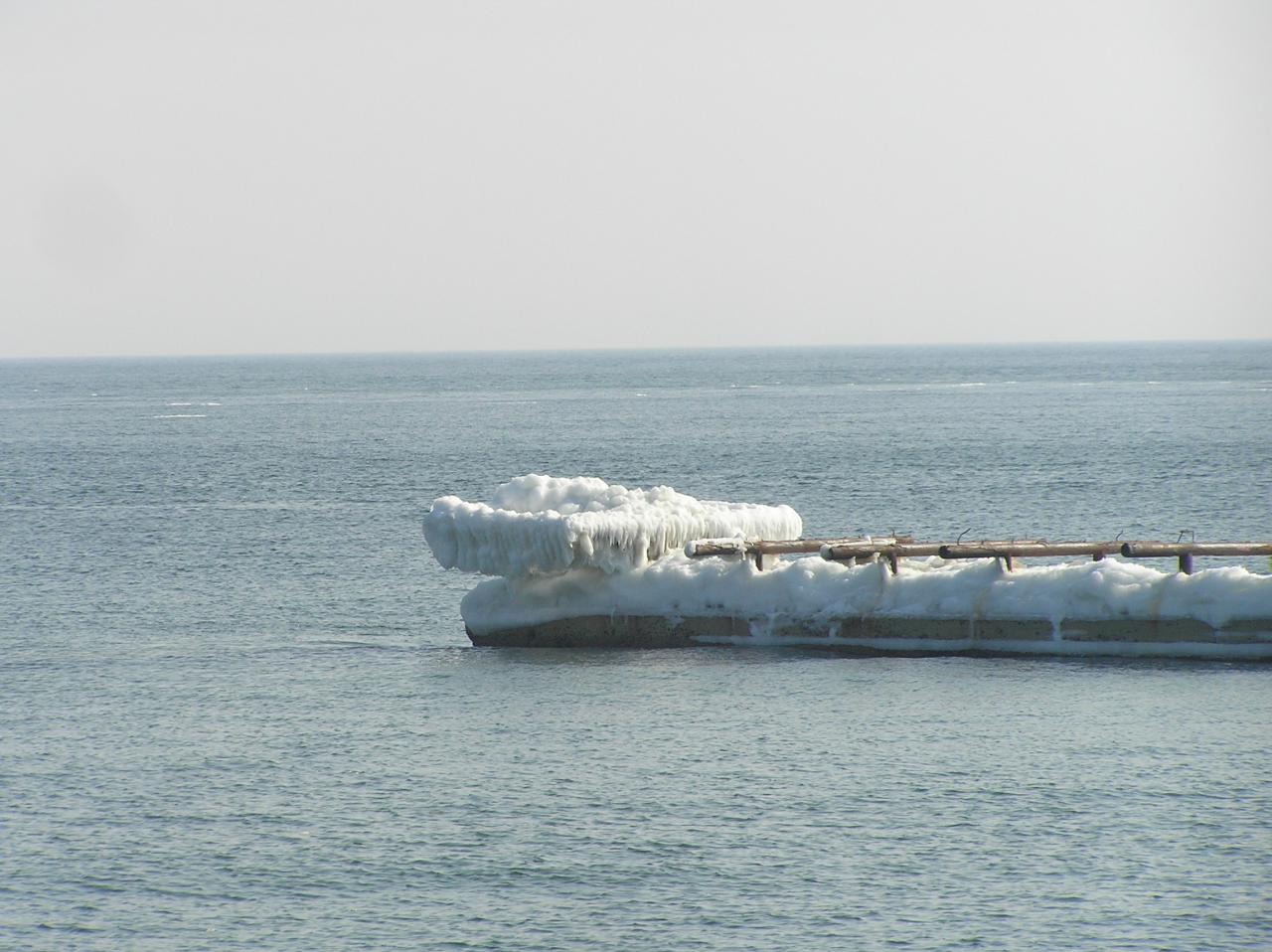 А далее - погода великолепная, яркое солнце, небольшой северный ветерок, вода около 1°С. Прибрежная полоса забита смерзшимся льдом, но море чистое. В воду входили справа от раздевалки, пришлось немного спрыгнуть с пирса на песок у кромки воды. Спасибо за компанию. До завтра