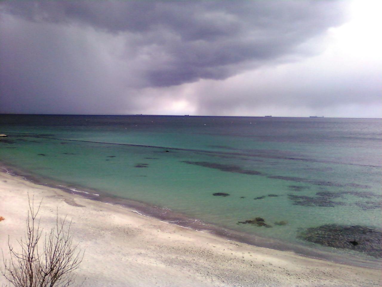 Полдень. Дельфин. Погода менялась каждые 10 минут и радовала своим разнообразием. Пока спускались к морю - начал лупить дождик с градом. Потом просто дождик. Ветер внизу северо-западный. Потом было солнце, удалось даже позагорать и сделать два захода в воду. Вода примерно 5-6 градусов, Очень прозрачная. Настроение соответствует сегодняшнему празднику.
