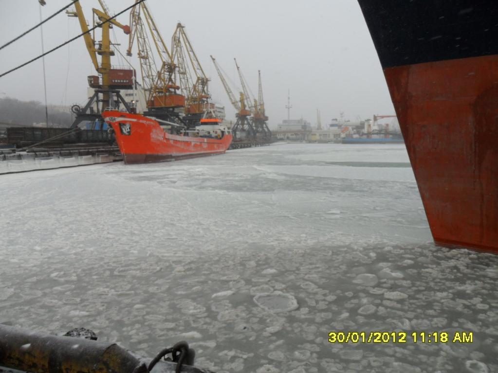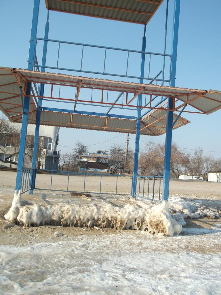 Сильный ветер, снег, среднее волнение на море, водичка темно-зелёная, чистенькая, на пляже замерзающая каша из песка льда и морской воды, пока штормит лёд полностью не прихватывает. Как только водичка успокоится, думаю, при таком морозе, будет каток![]()
