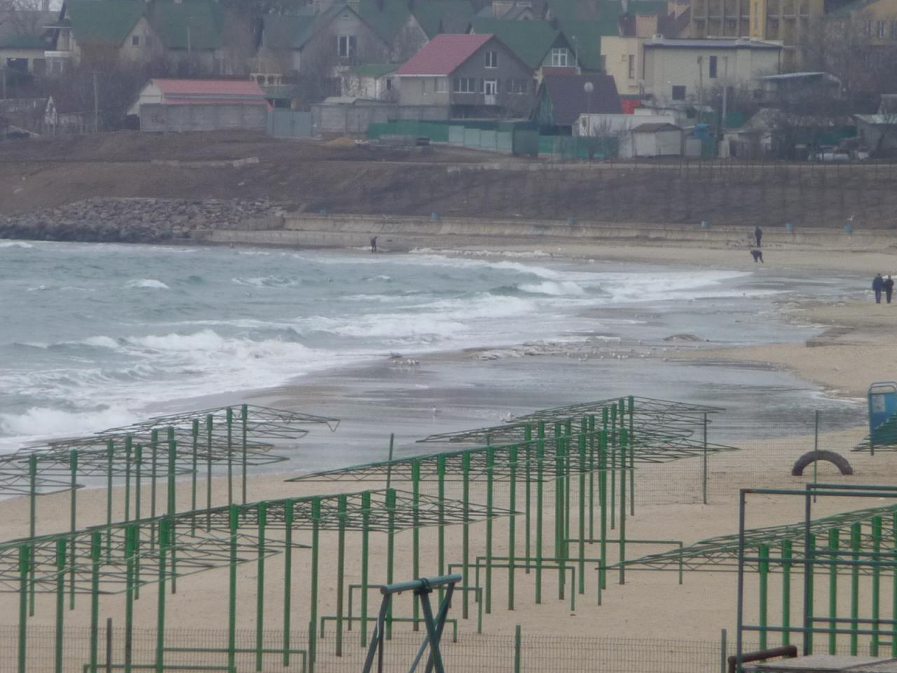 Кабельный, 8.00. Пасмурно, легкий северо-восточный ветерок, море спокойное. Воздух 5, вода 1, почти прозрачная.