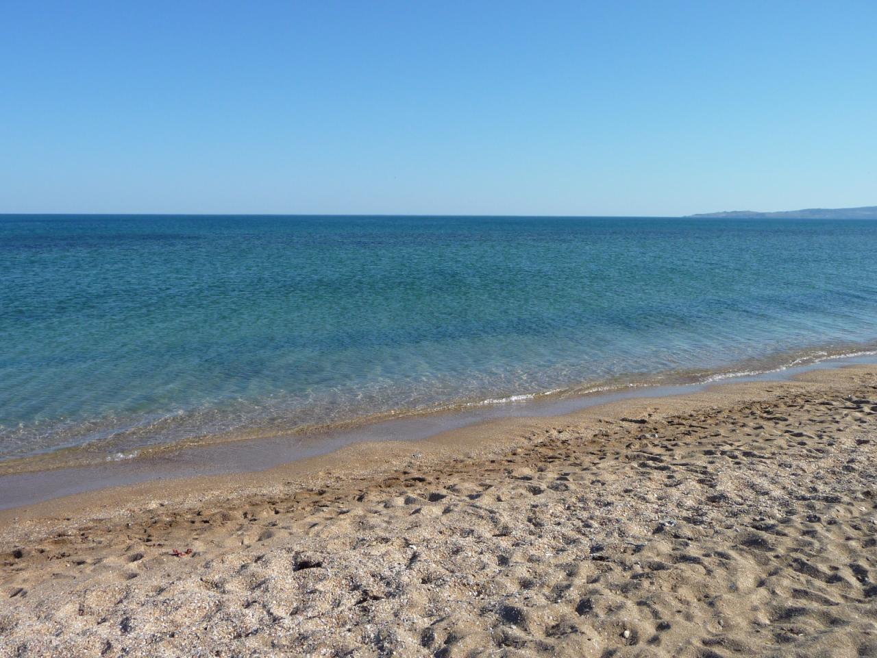 Море спокойное, волн нет, лишь ветровая рябь. Вода прозрачная.