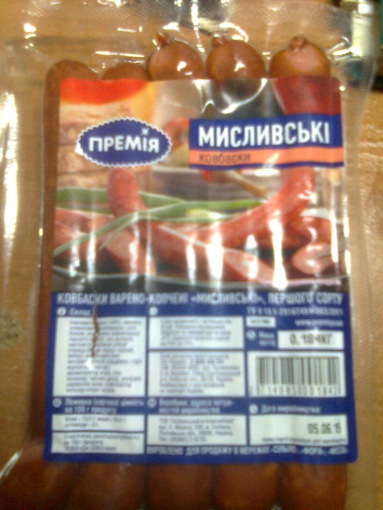 Сосиски "Дачные" премия -цена возле пачки стоит 13грн 40коп.В пачке 5 сосисок.Вес 184 грамма.Конечно я решила,что это за пачку.На кассе выяснилось 184*13.4=25грн(приблизительно)