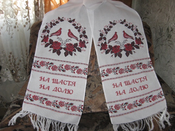 Рушники я вышивала на обычной канве,но только брала мелкую,6 стежков в 1 см и 6,5 стежков в 1см,Это необычно для рушников,потому как все берут 5 или 5,5,но я много пересмотрела производителей канвы и у всех 5 и 5,5 с рыжинкой почему то ,а мне нравиться снежно белая,да и работа на канве помельче выходит изысканнее,размер самих рушников 42 см в ширину и 3 метра в длину.Вот еще один вчера закончила ,(правда фото не очень)посмотрите,буду рада любому вашему мнению.