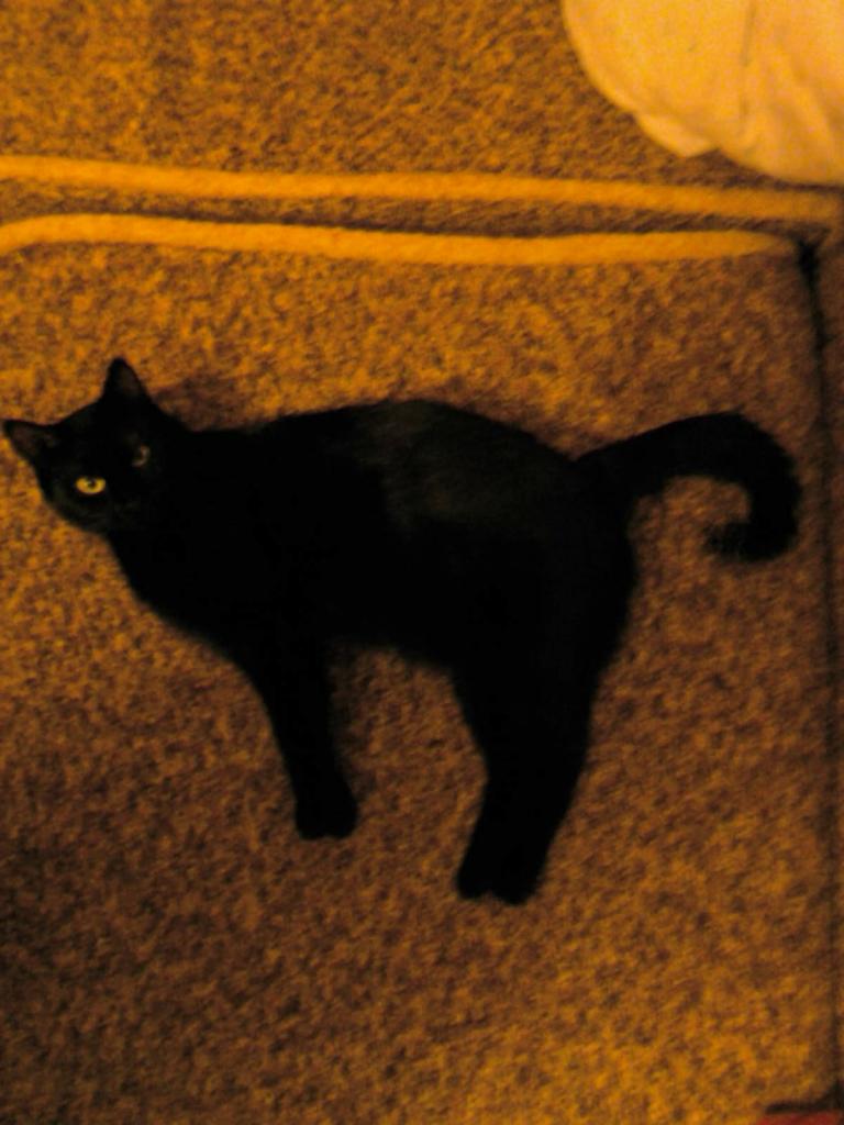 А это Василёк решил переждать время, пока мы стелили свеже-постиранный, их любимый с Рысом ковёр
