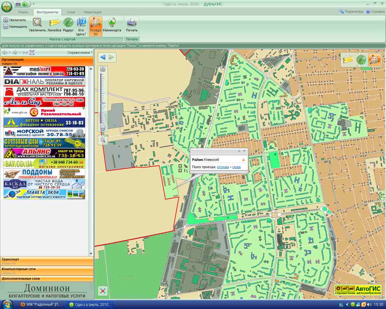в дубльгисе Радужный оказался походу внутри Одессы