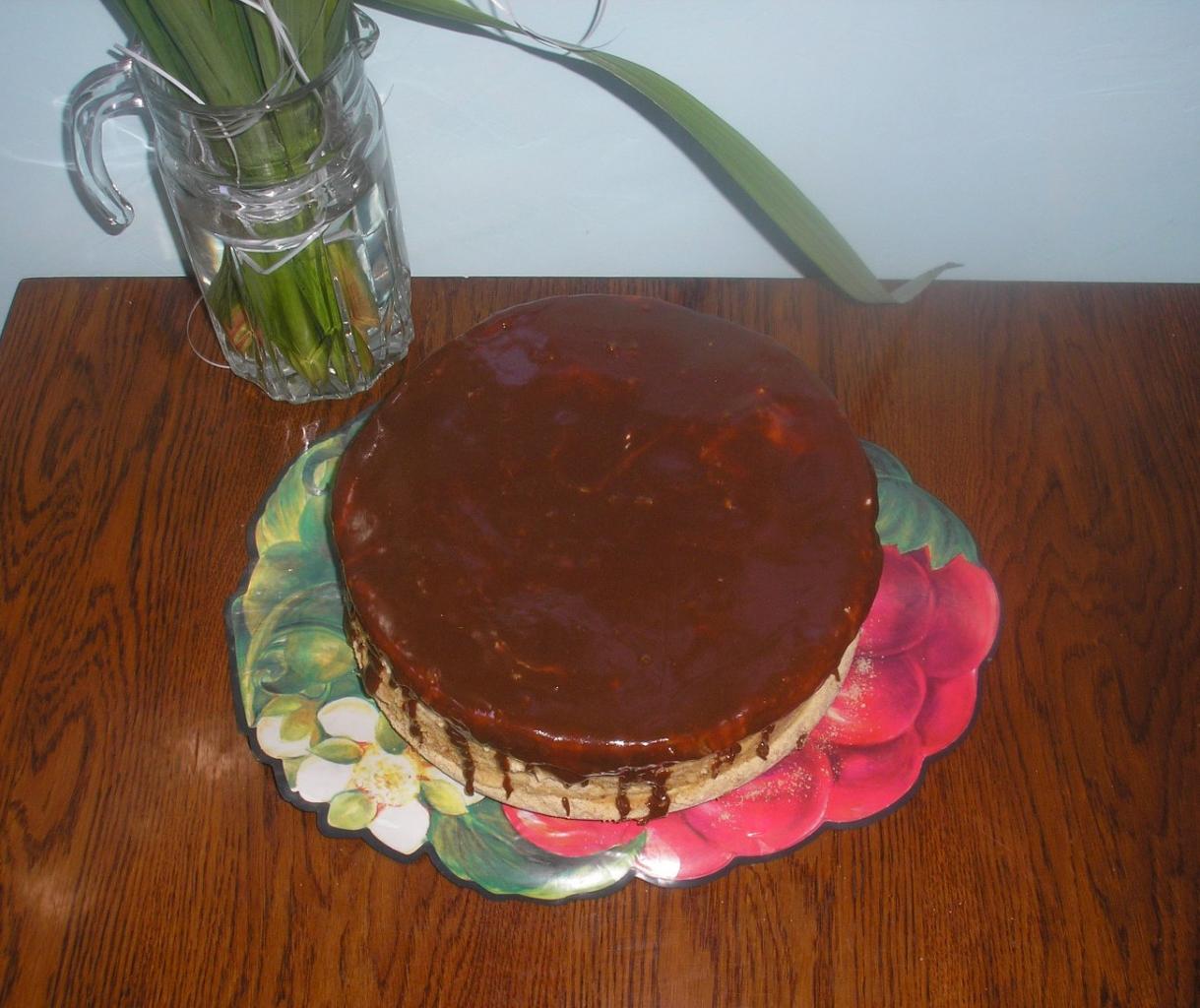 Перемазать коржи, я между коржами добавляла поджаренные орехи и чернослив. Оставить на столе на 2-3 часа пропитаться - а потом в холодильник. Получилось очень вкусно, но коржи должны быть достаточно тонкими, чтобы хорошо пропитались и торт был "мокреньким".