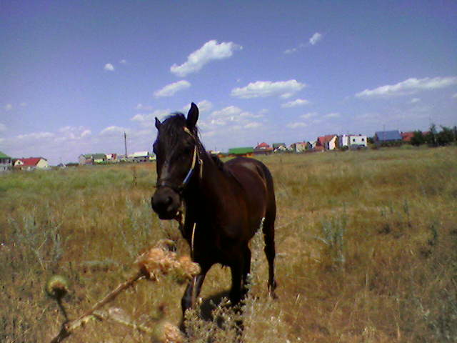 Отдыхали в районе Студенческой. Там пообщались вот с таким умным мальчиком. Когда мимо шли всегда к забору насколько веревка позволяла подходил.