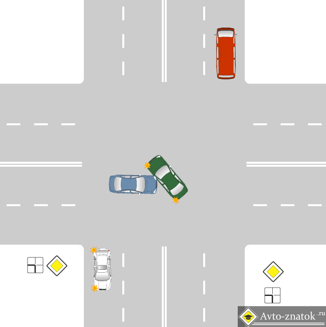 тогда к тебе вопрос: в какой последовательности проедут автомобили указанный ниже перекресток?