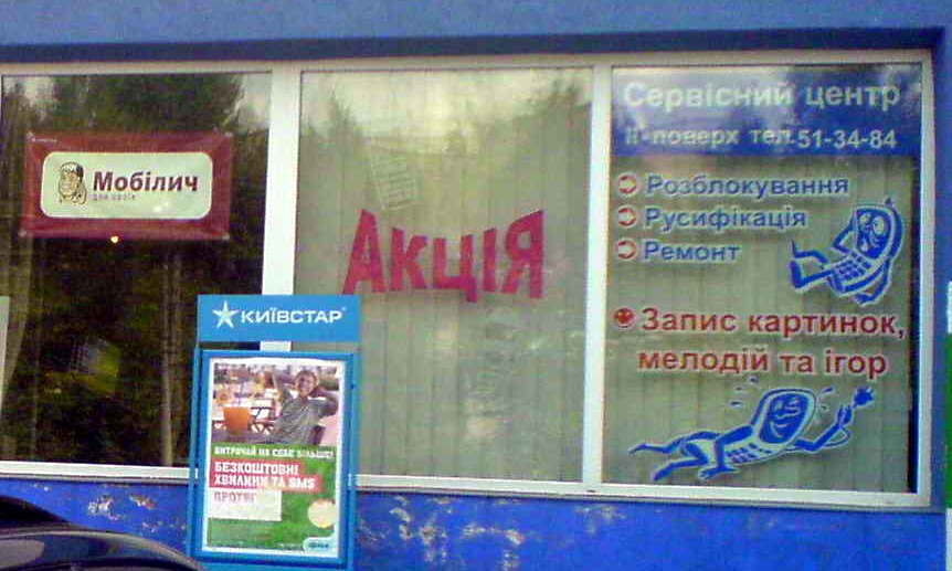 ЗЫ: НИ РАЗУ не видел ни одной вывески с, типа, укроинифицификацией, даже слова такого не видел, потому даже и не знаю, как это слово написать!