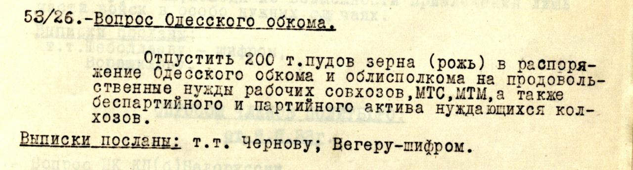 Интересно отметить, что в Христиновском районе колхозники относятся отрицательно к помощи голодающим семьям, потому что большинство из них почти не работало и имеет очень небольшое количество трудодней.