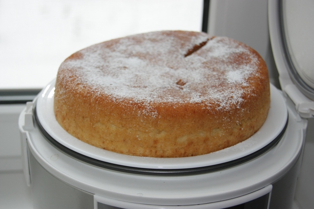 4 средних яйца взбить хорошо(я не отделяю белки/желтки, но можно) с сахаром(ок 1 стакана), 1 стакан (250граммовый ) муки(много зависит от муки, у меня только на Кулиндорово получается.....), 1 ст.л. крахмала, 50 минут выпечка, выключить, вынуть клапан, через 10 минут открыть, еще через 10 минут вынуть.