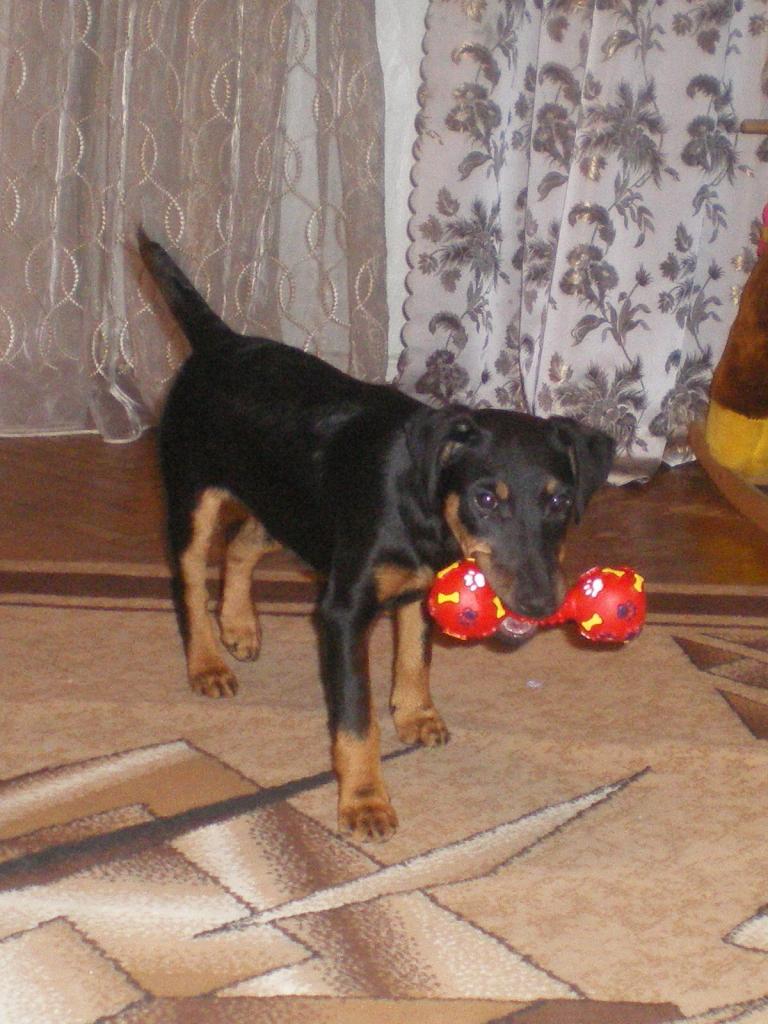 А Джока любит мячики, только живут они не долго. Теннисный мячик (для большого тенниса) за 10 минут превращается в два полумячика. Про надувные молчу. Живет только цельнорезиновый.Но он тяжелый, а полы паркет: соседям по голове бум-бум, поэтому выдаем его редко. Хорошо (но очень громко) воюем с 1,5л пластиковыми бутылками, за 3 минуты откручивает пробку и еще за 10 минут спрессовывает до неузнаваемости.