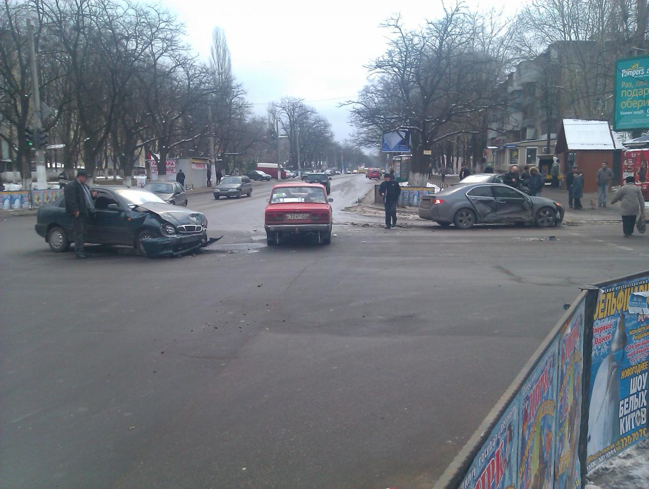 Генерала Петрова/Гайдара. Буквально минут 10-15 назад... Дэу с николаевскими номерами. В хонде и ниссане стрельнули подушки (не все).