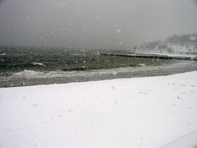 9 часов. Аркадия. Снег, ветер. Где мороз?