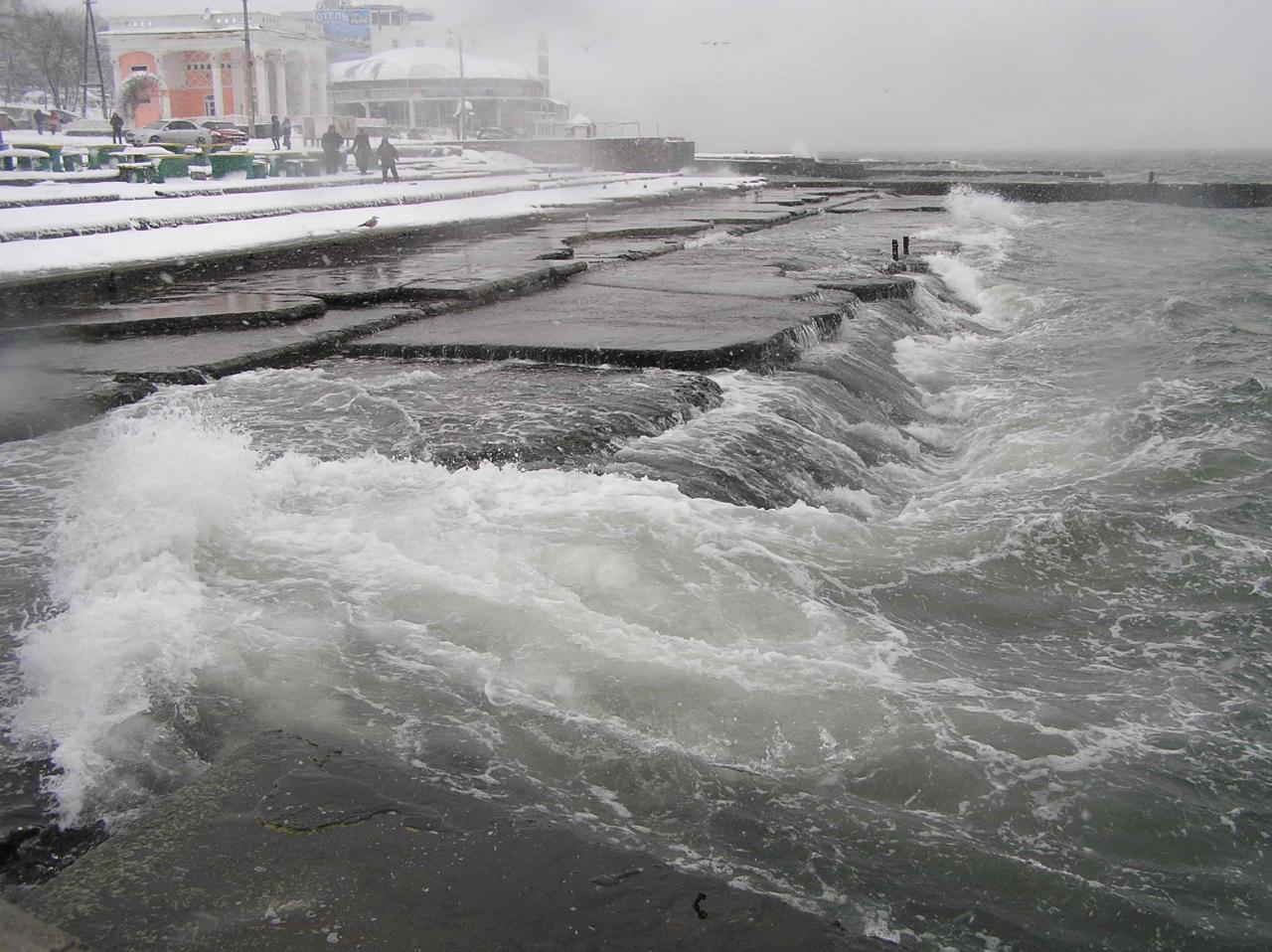 Сьогоднi на морi шторм та холодний вiтер зi снiгом ;дуже холодно.