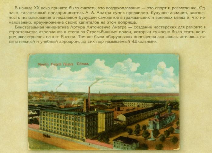 Автор просто не знает, что представляли собой цеха на Стрельбищном поле и не перевёл надпись на открытке. Завод Анатра состоял из одноэтажных сооружений похожих на склады. Ничего настолько монументального там не было. А на рисунке явно мельница (элеватор), и даже подписано "Мельница братьев Анатра". К тому же, когда работал сайт "Победа", то на аэрофотоснимке она была узнаваема.