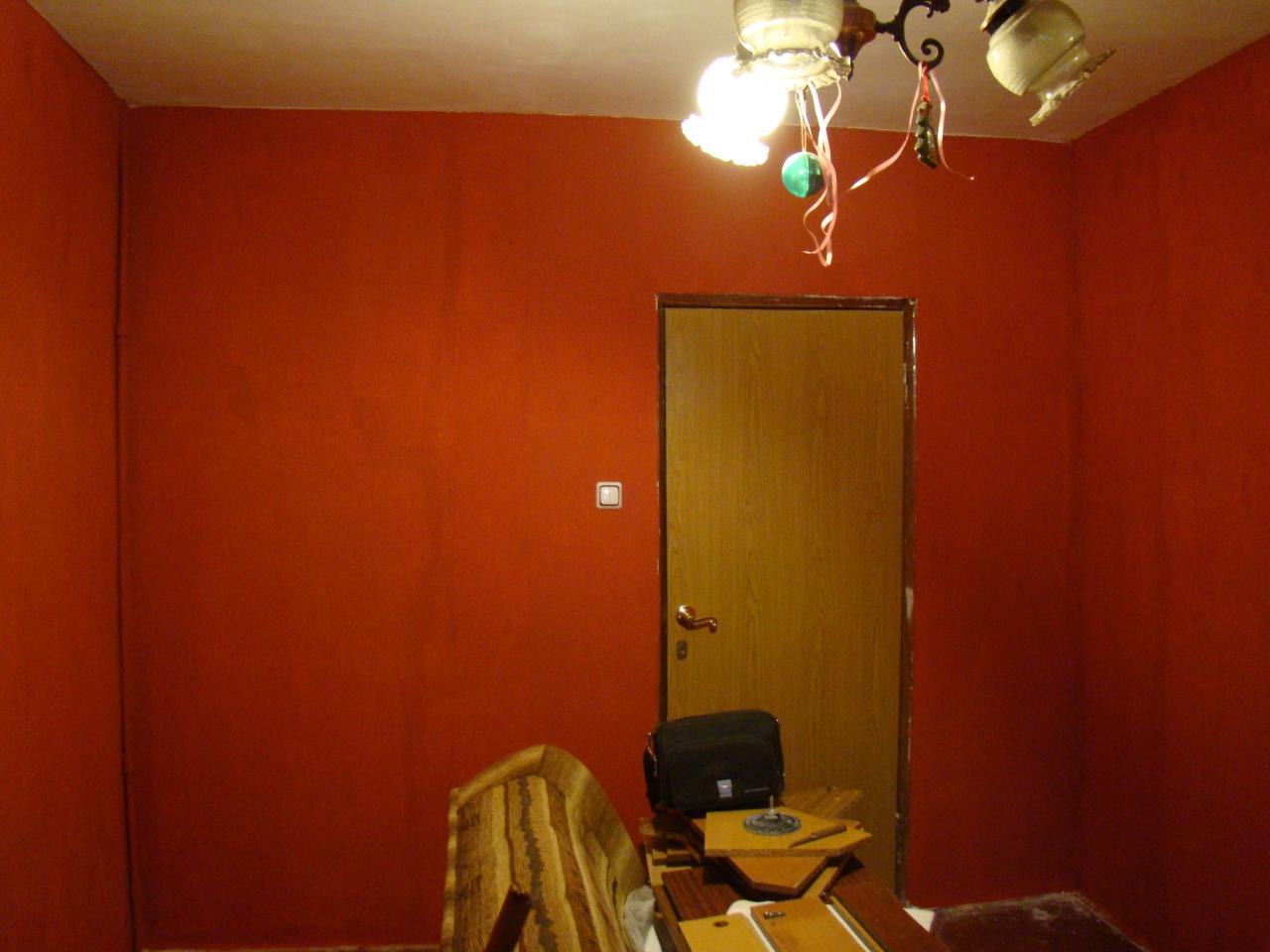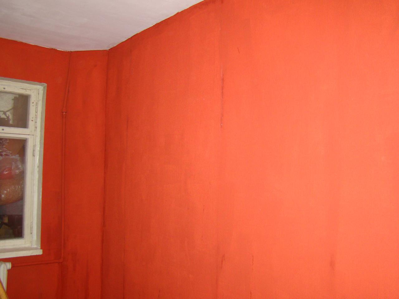 на потолок в угол на стыке со стенами под 2-ой слой хотя бы малярную ленту наклейте, а то совсем стык стен с потолком кривенький. За цвет говорить не буду...,нет, скажу, уж извините-можно было сделать терракотовый цвет, точнее, оттенок. принцип тот же, а смотрелось бы на порядок приятнее. И ещё, когда перекрасить надумаете, мой Вам совет, сначала белой краской закрасьте хотя б 1 слой, а уже потом любым другим. Иначе будете до посинения этот красный закрашивать.