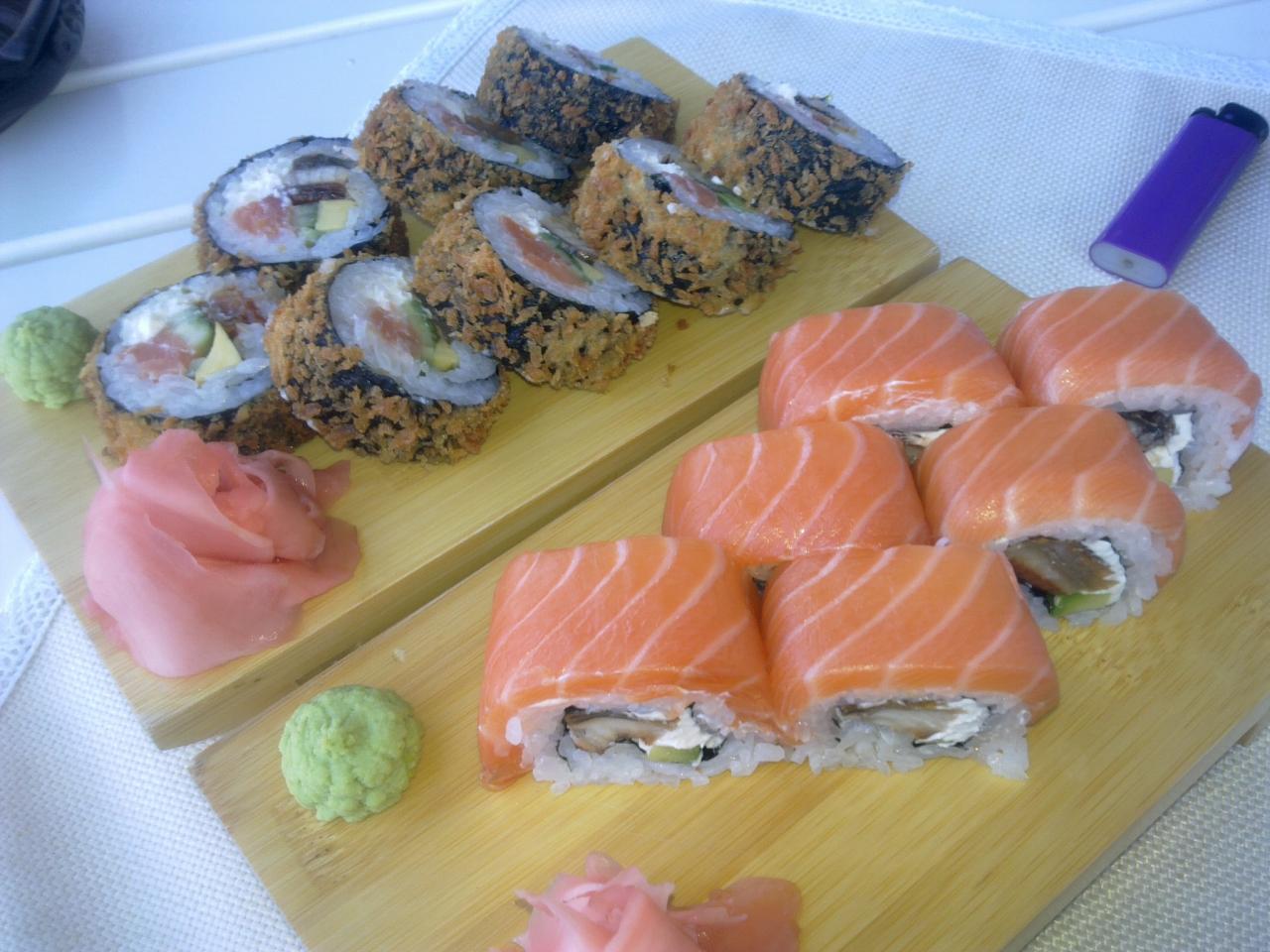 -меню-понравилось,хотелось попробовать многое,но был вечер и до этого было съедено не мало,поэтому осилили по порции суши и десерту. Суши-Г полное за 100 грн за порцию,обидно. В плане суши мой фаворит-Сальери,очень вкусные,порции приличные,20% скидки,любим вообщем.
