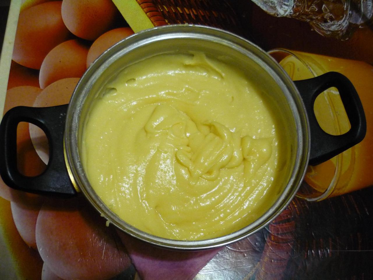 5 желтков, 300гр. отваренной тыквы, 125гр. растительного масла, 1 - 2ч.л. лимонной или апельсиновой цедры смешать в миксере на большой скорости.