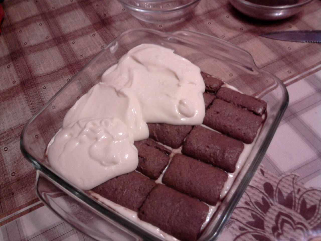 3 желтка, 150 г сахара, ваниль и 100 г муки. Хорошо вымешиваем, пока не начнёт образовываться тесто.