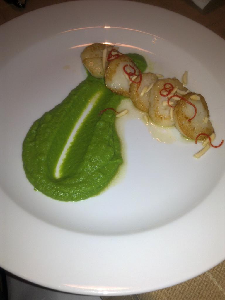 Пюре было выложено в виде чего-то фаллического, почти по Фрейду и отвлекало внимание от непосредственно гребешков...