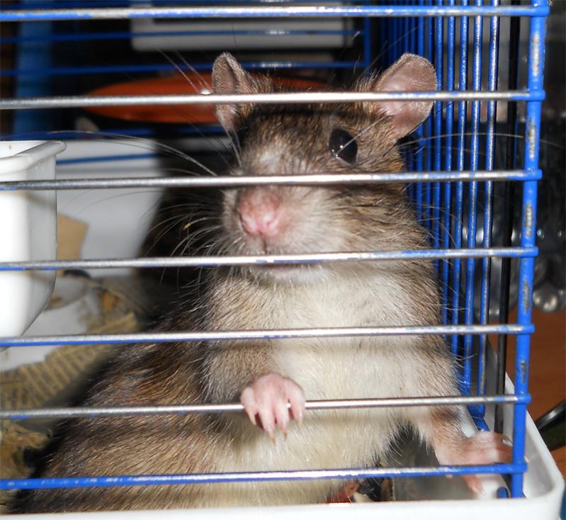При том, что животному уделяется крайне мало внимания(сложно регулярно играться с крысой при наличии 3х котов), никаких признаков одичания не заметно. Из особенностей поведения-никогда предложенная еда не хватается, всегда обнюхивает, пробует, но в клетку не тащит(исключение 2 или 3 раза 1 сорт сыра и 1 вид сарделек. Если я засуну пальцы в клетку-тщательно облизывает и легонько прикусывает если муж-только нюхает, ко мне сама по руке выходит из клетки, к мужу -нет.По клетке скачет как белка, пластиковый 2й этаж прожил около месяца потом просто раскололся(. Недавно каким-то образом перевернула клетку-летела с книжной полки, забилась под кухонный уголок-вышла по просунутой мной руке! Корм типа пацючок, зернятко и т.п не признается и тщательно выбрасывается(преимущественно мужу на лысую голову))). Ест голландский развесной, хлопья наш корм и семечки,обожает йогурт зелень под настроение. Вот такой получился домашний питомец!!!