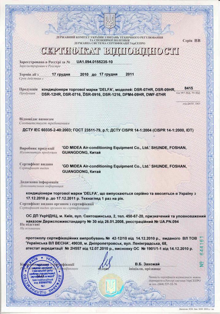 Вообще то, это сертификат соответствия нашим стандартам, но он подтверждает, что эти кондиционеры соответствуют нашим параметрам безопасности. И все! Про качество тут речи не идет!