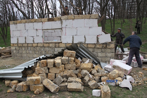 Как передает корреспондент ИА "МОСТ-Одесса", запала у чиновников хватило на одноэтажное строение из ракушняка и пенобетона, посаженного на монтажную пену. При этом, "здание" даже не имело фундамента. И как признался вице-мэр Одессы Александр Орлов, его уже сносят третий раз за семь дней.