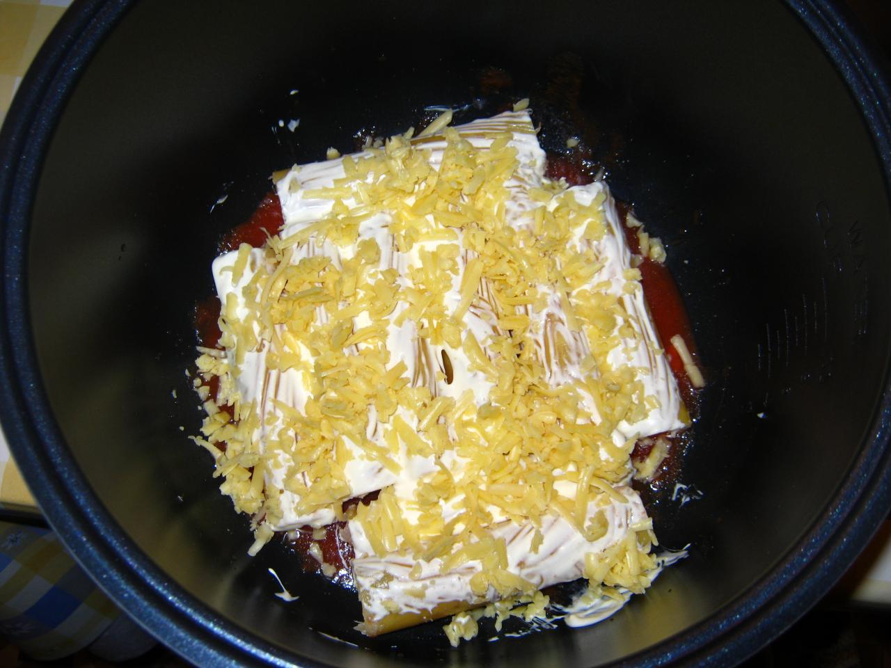 на дно налила остатки томата, сложила туда первым слоем смаза смесью сметаны и майонеза и сверху сыром посыпала. второй слой смесь смесь майонеза-сметаны и сыр. и вкууууусно нереально. Ребенок упрашивает не съедать все, а ей оставить))