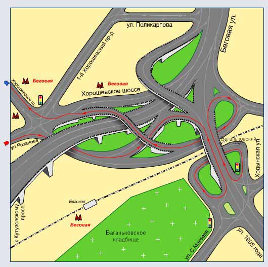 Если им закрыть какой-нибудь правый поворот и повесить информационное табло с вариантом проезда а-ля Стальканат - то хана... А так все цивильно, скользкое место узрел только в р-не последнего поворота на Хорошевское шоссе, там надо с левой полосы (с моста) резать под углом для правого поворота... И, обратите внимание, всего 3 светофора!