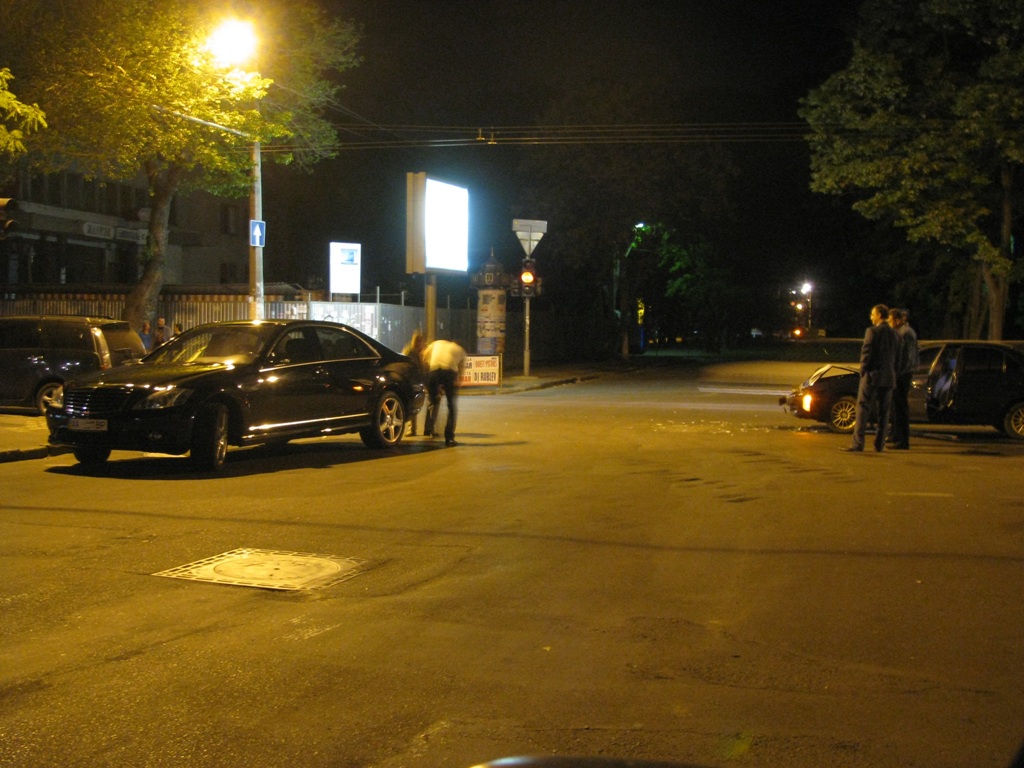 Второй участник - темная тойота. Стоял на тротуаре справа от гетза, вмазавшись в стену здания.(перелетел бордюр и газон)