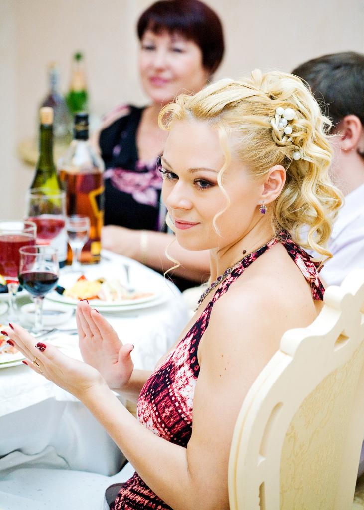 а вот работа моего визажиста-парикмахера...она делала мне прическу и макияж на свадьбу друзей + клеила реснички...длина волос не моя, она добавила мне шаньён...прическа и макияж держались весь вечер без проблем с учетом что тогда была жара дикая...но все было супер ...на свою свадьбу прическу и макияж тоже буду у нее делать...если кому надо пишите скину контакты